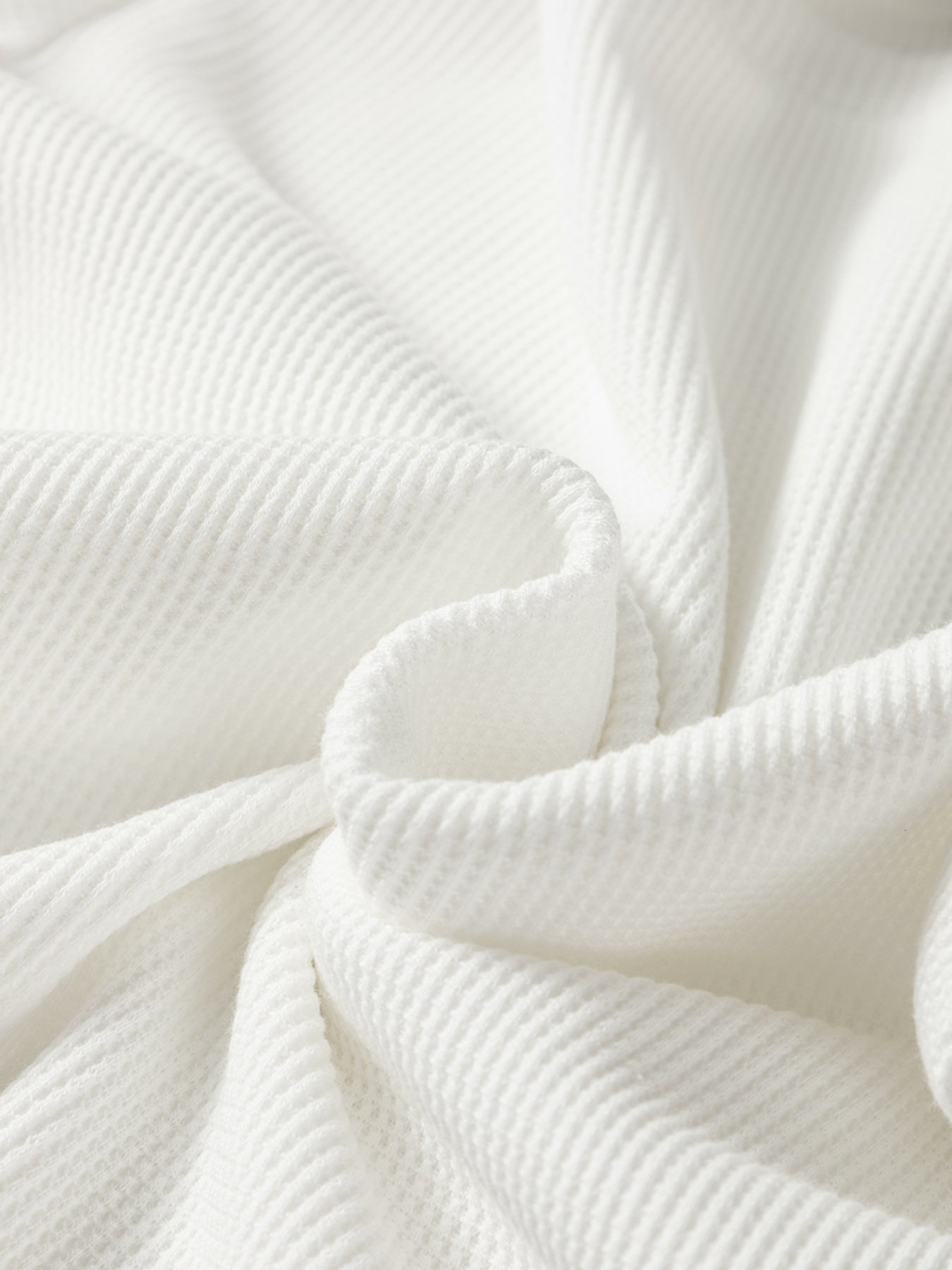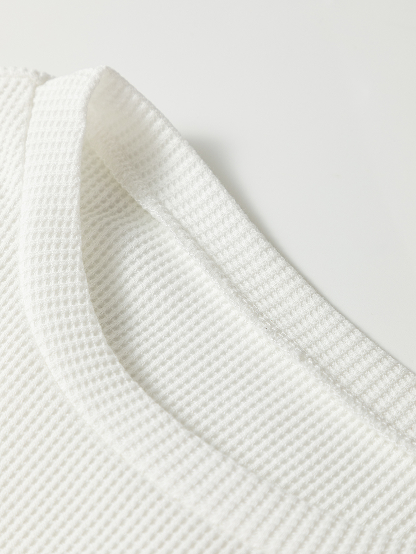 Rounded Neck Waffle Long Sleeve Top