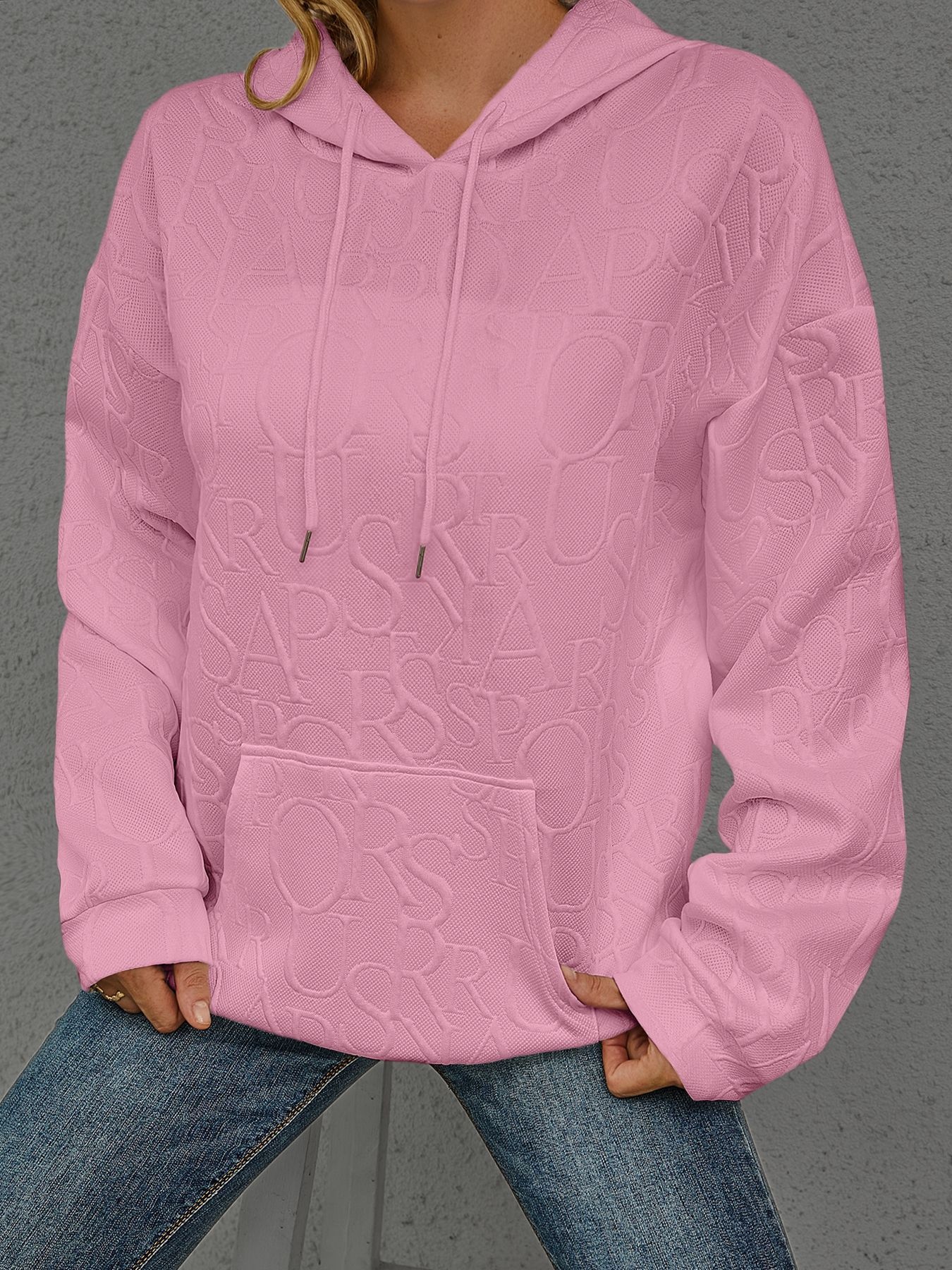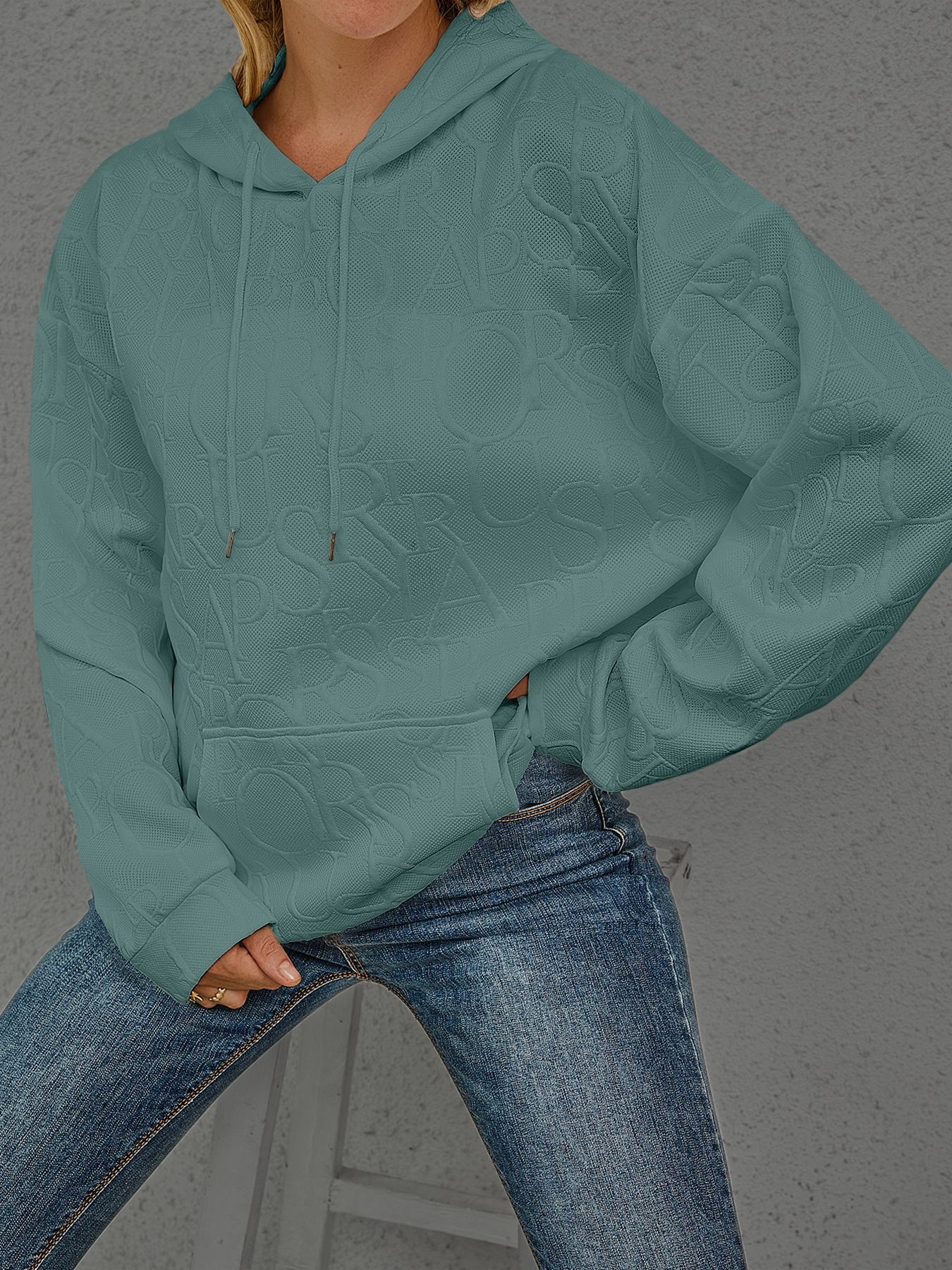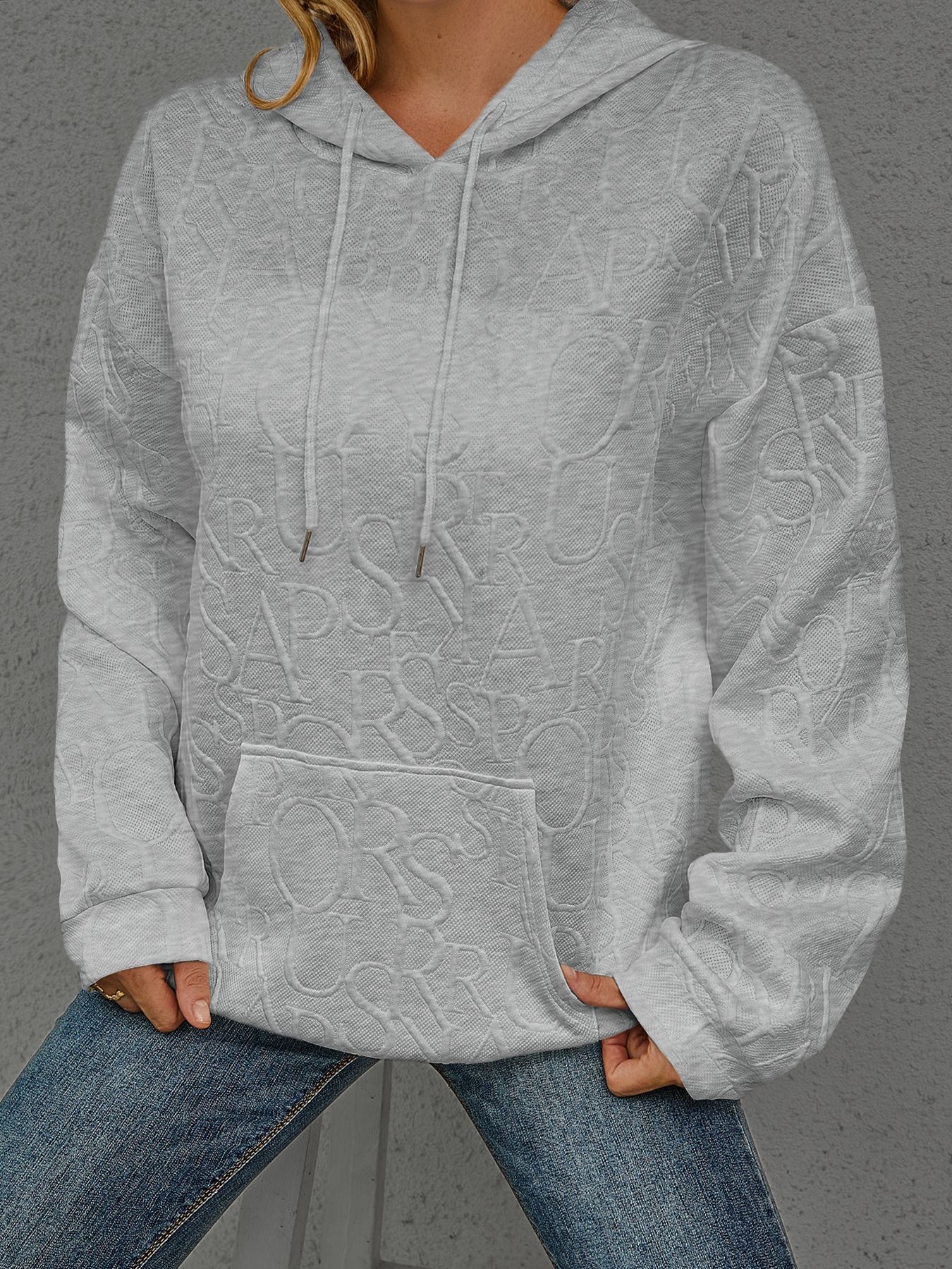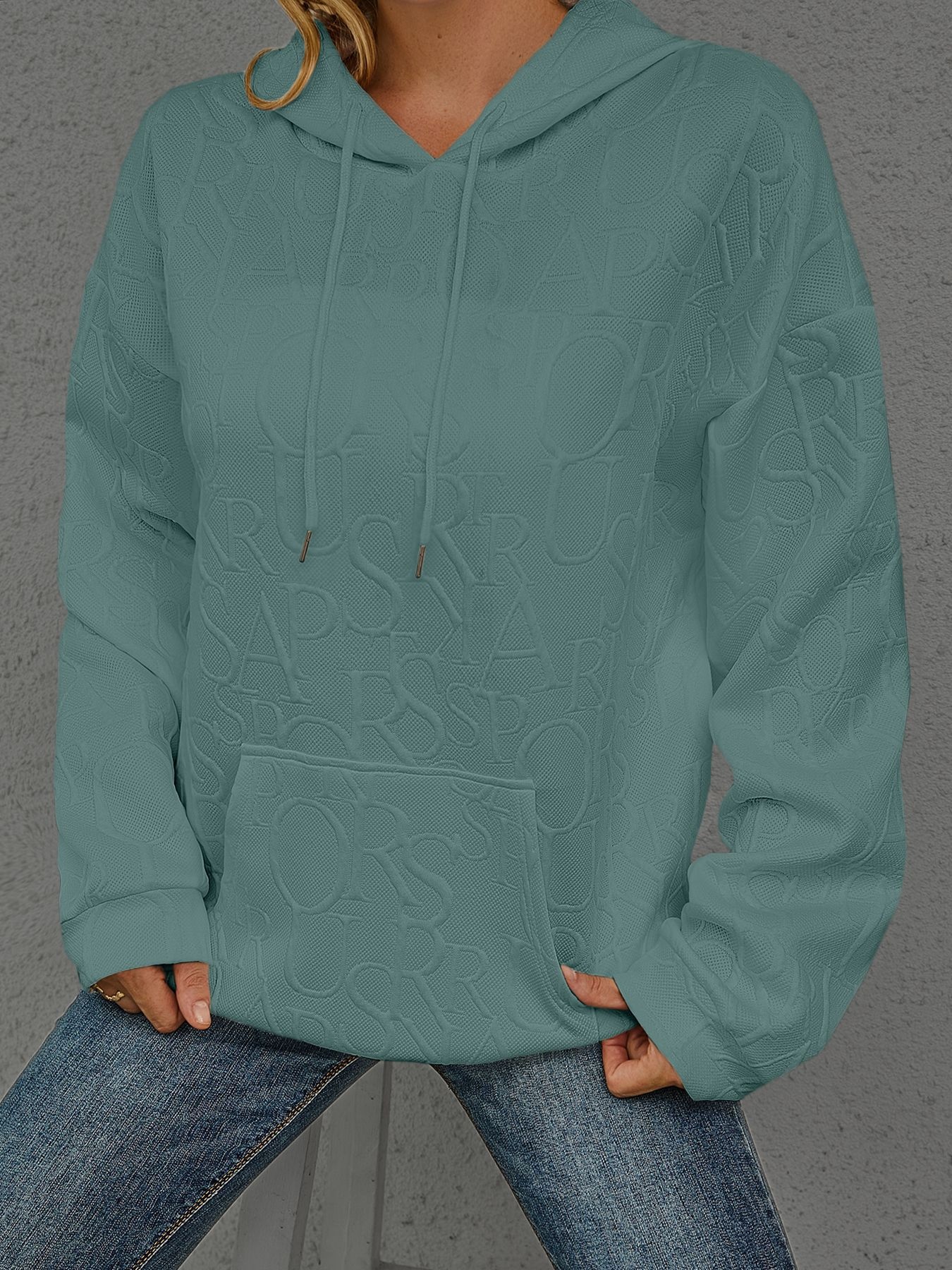 Full Size Embossed Lettering Casual Hoodie Plus Size
