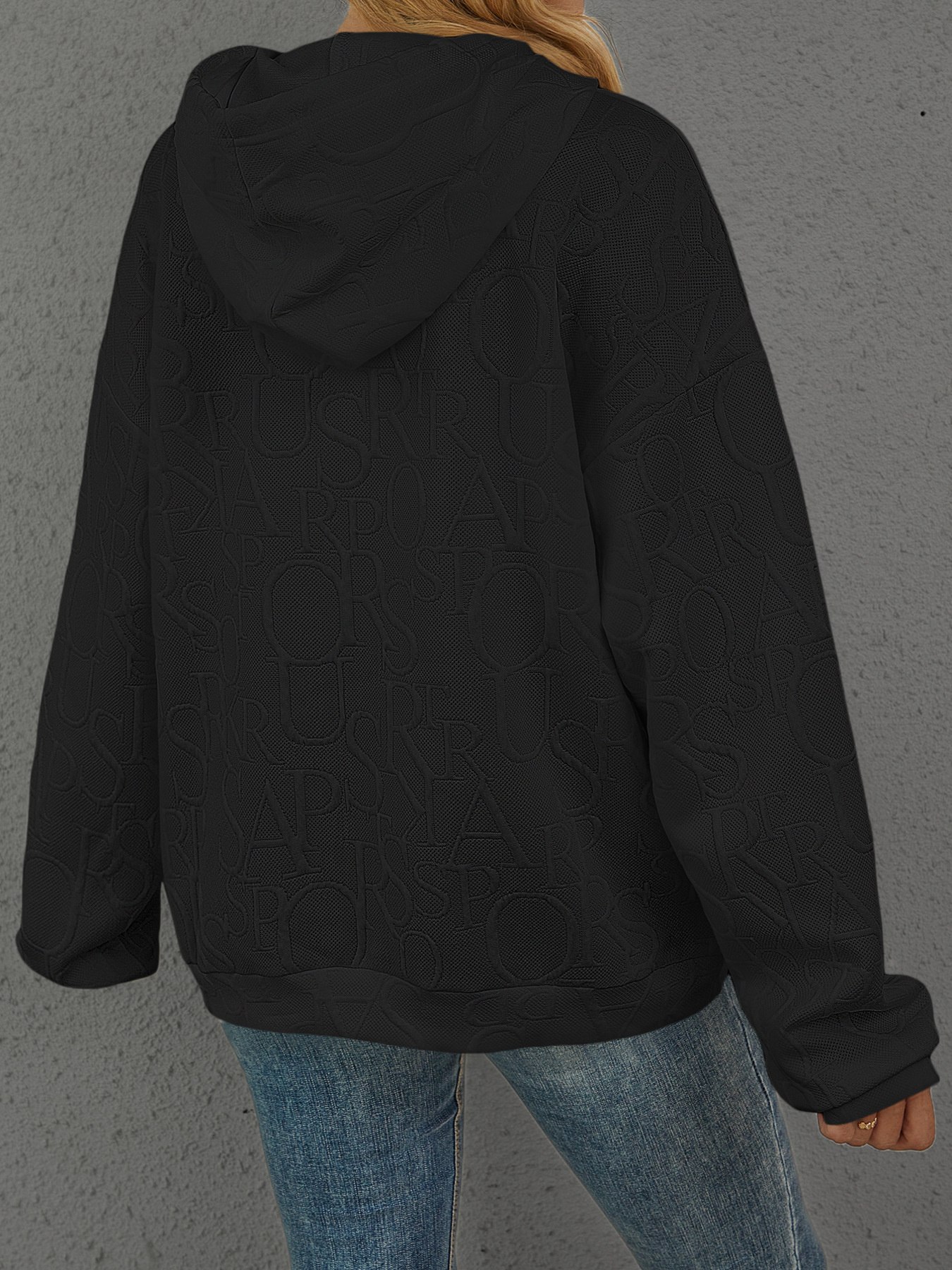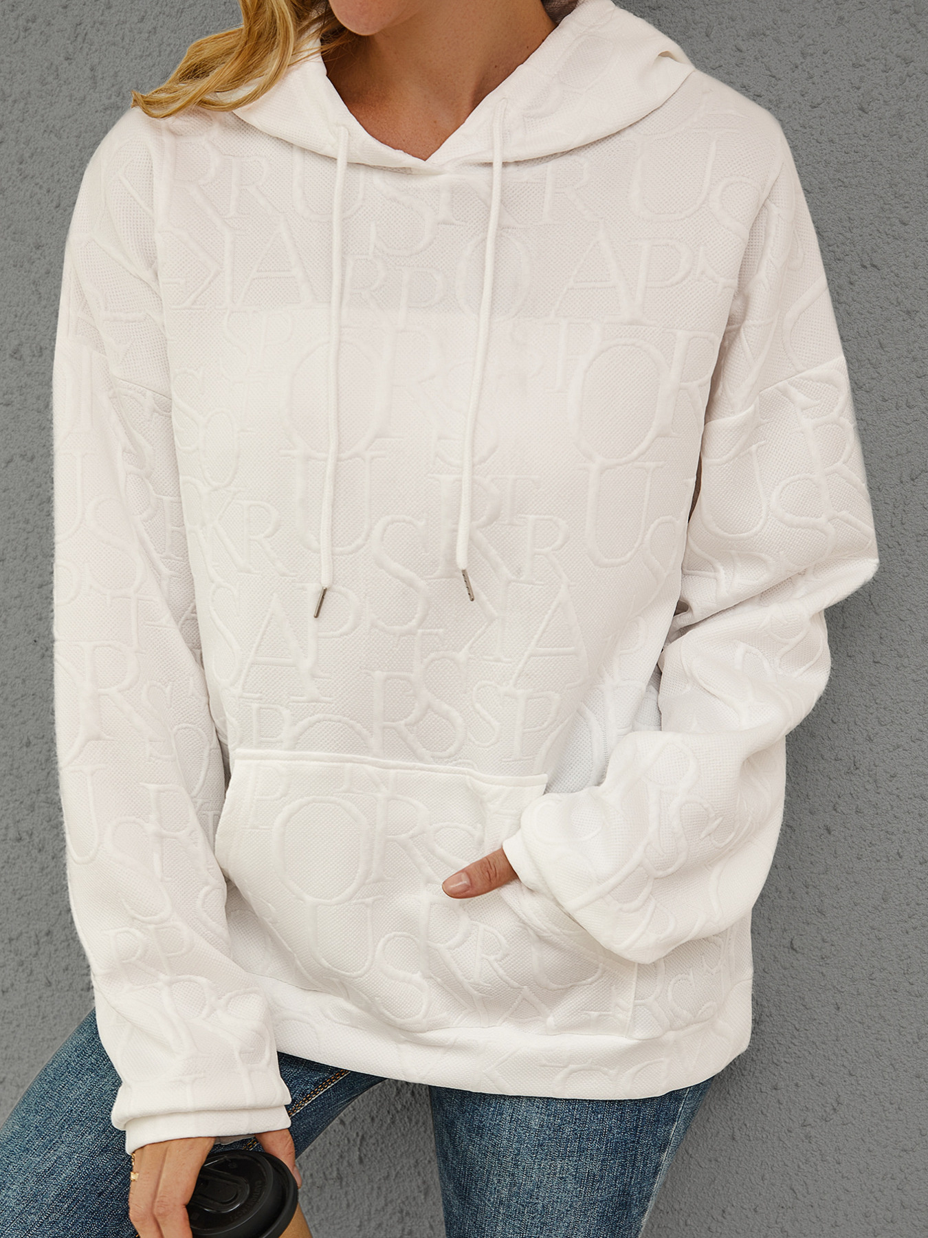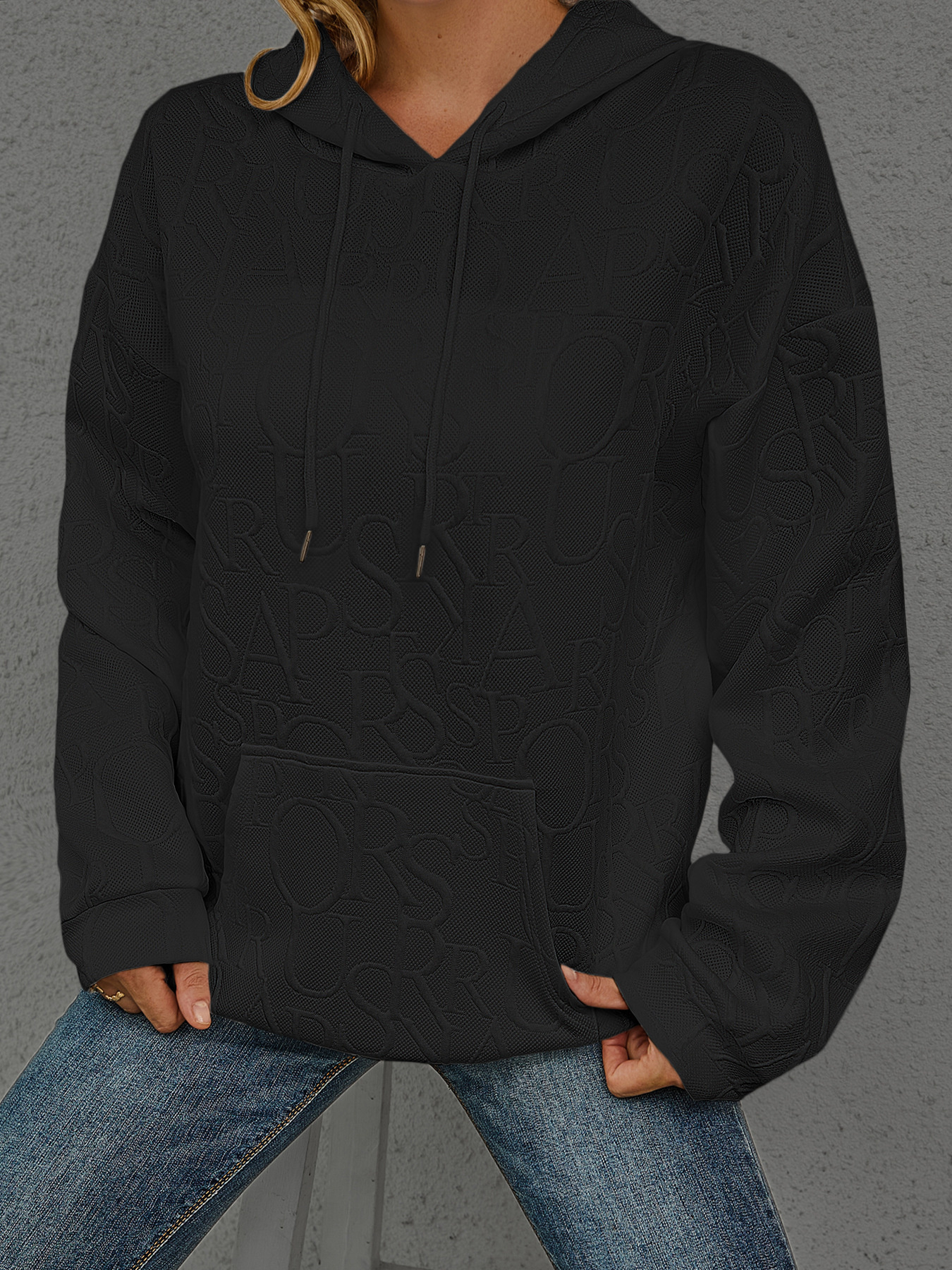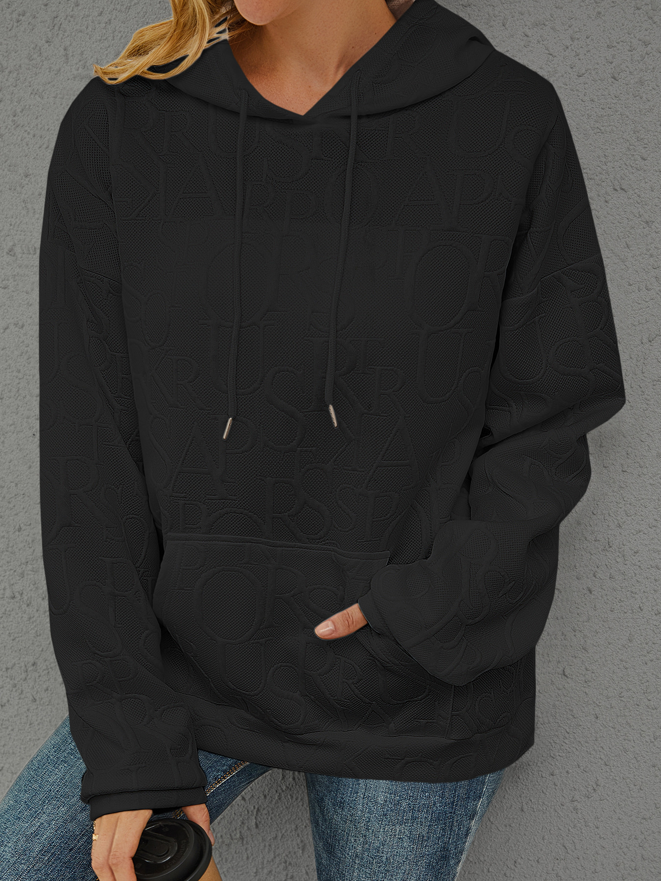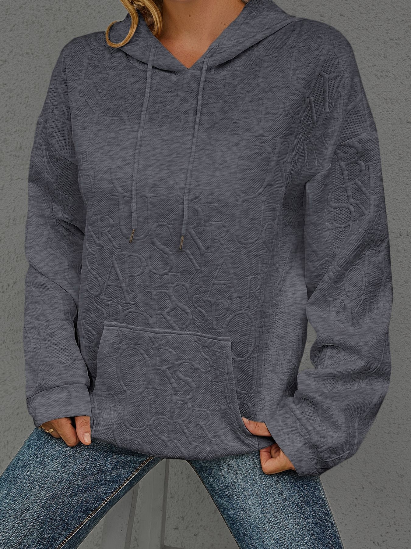 Full Size Embossed Lettering Casual Hoodie Plus Size