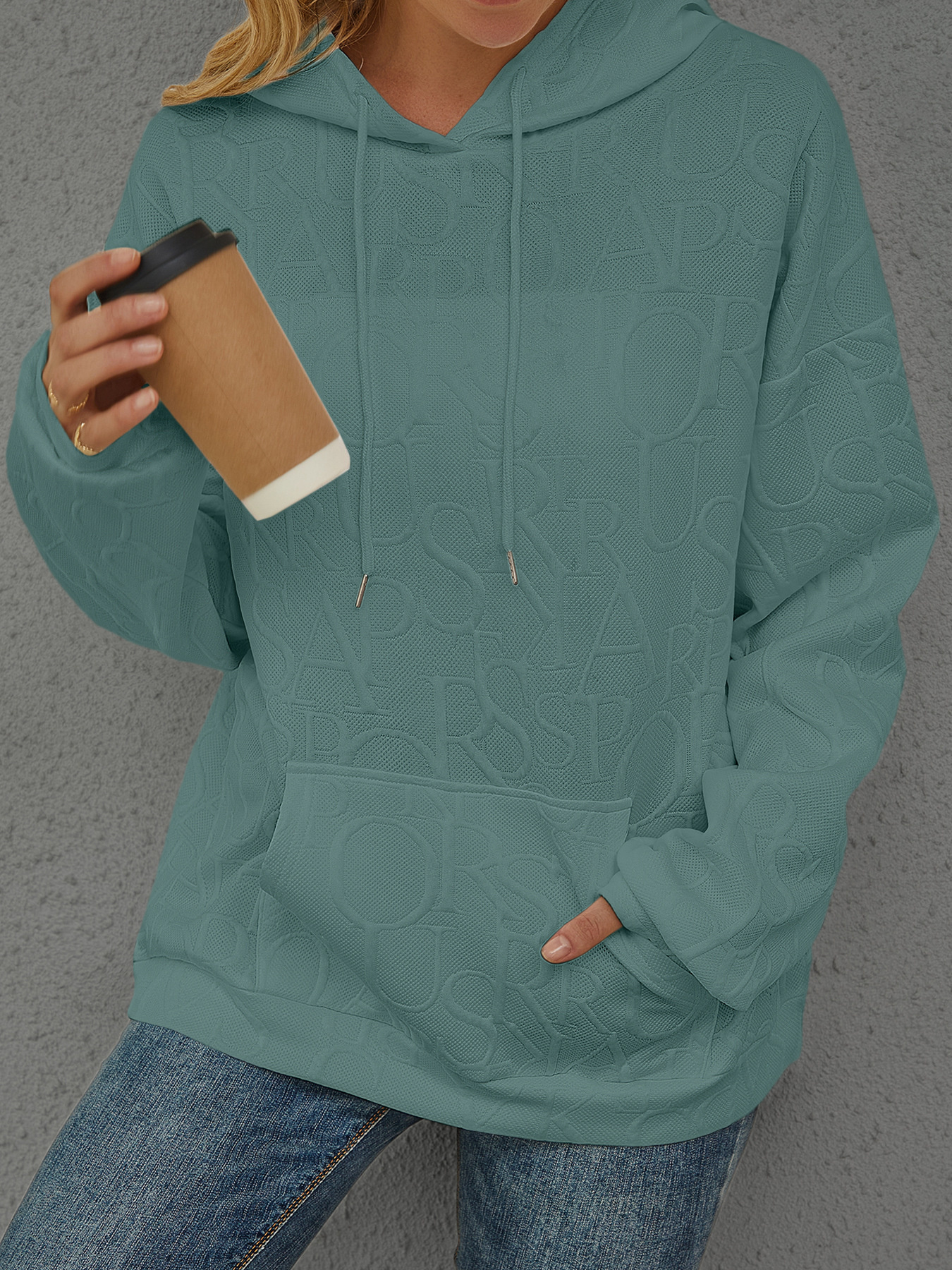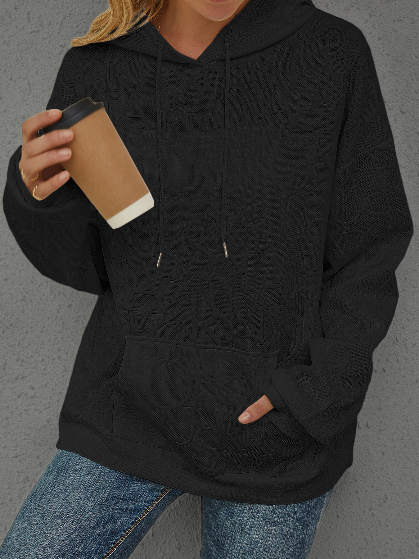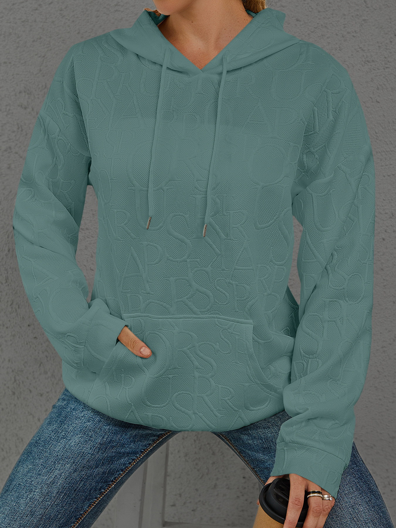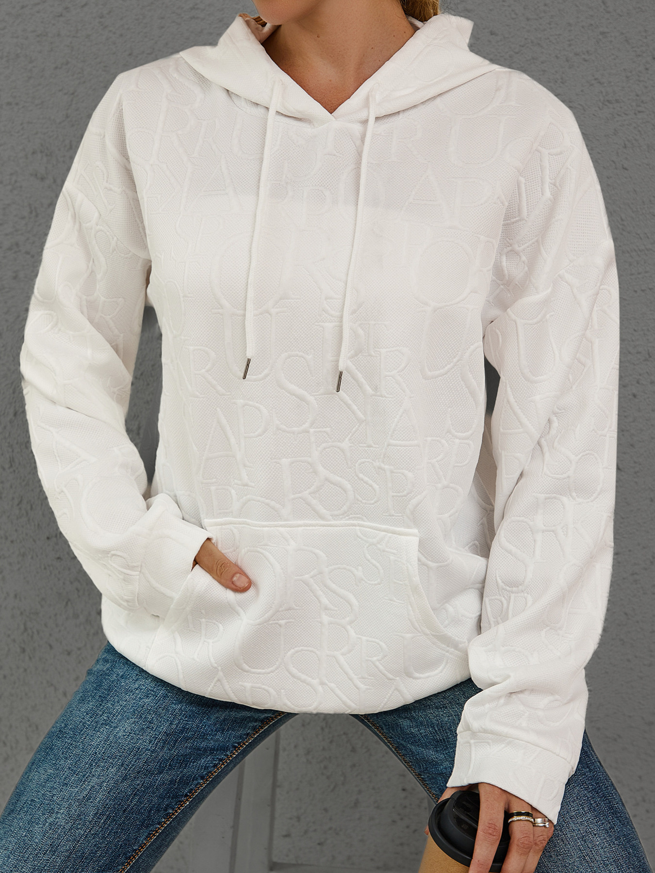 Full Size Embossed Lettering Casual Hoodie Plus Size
