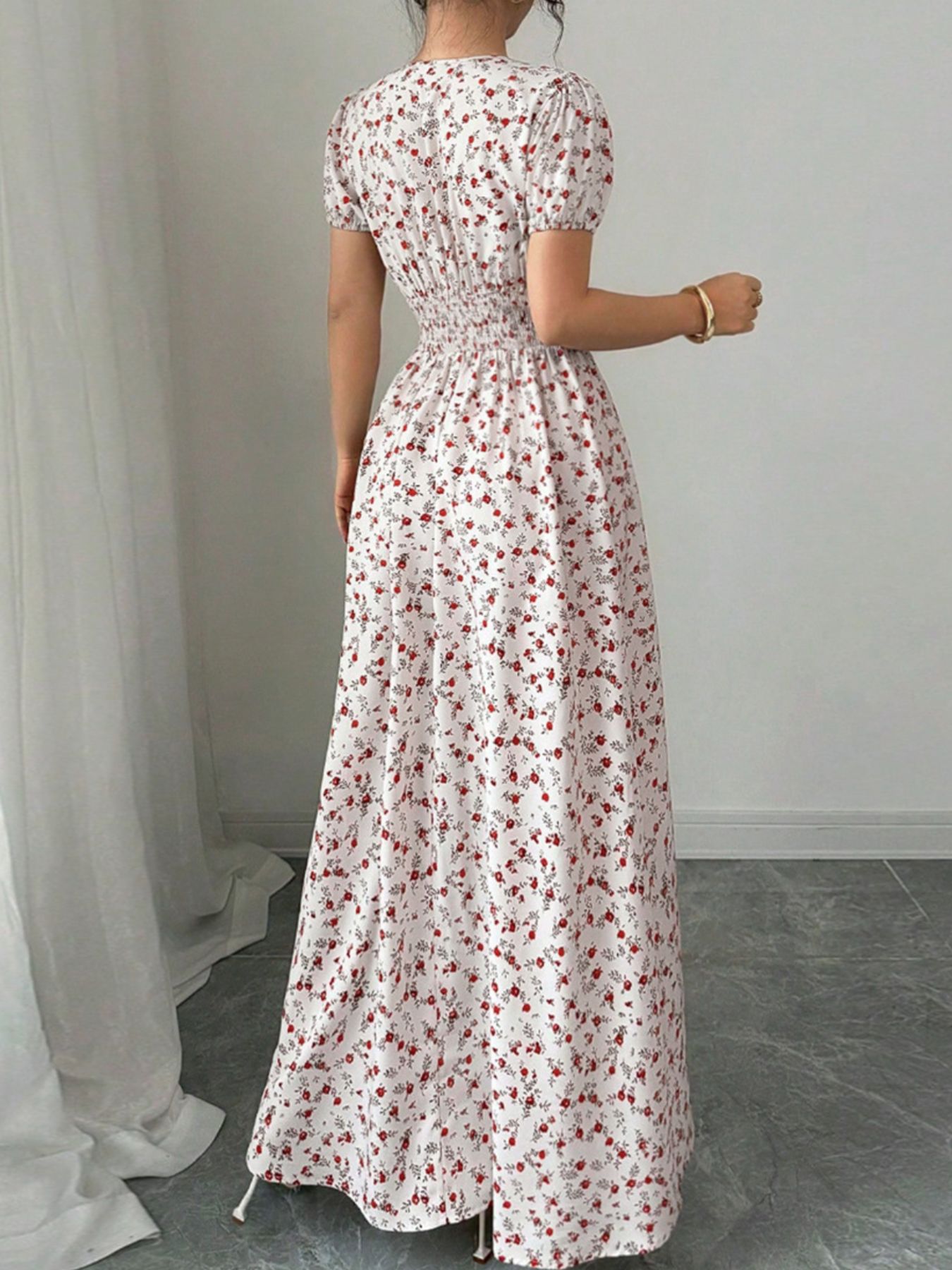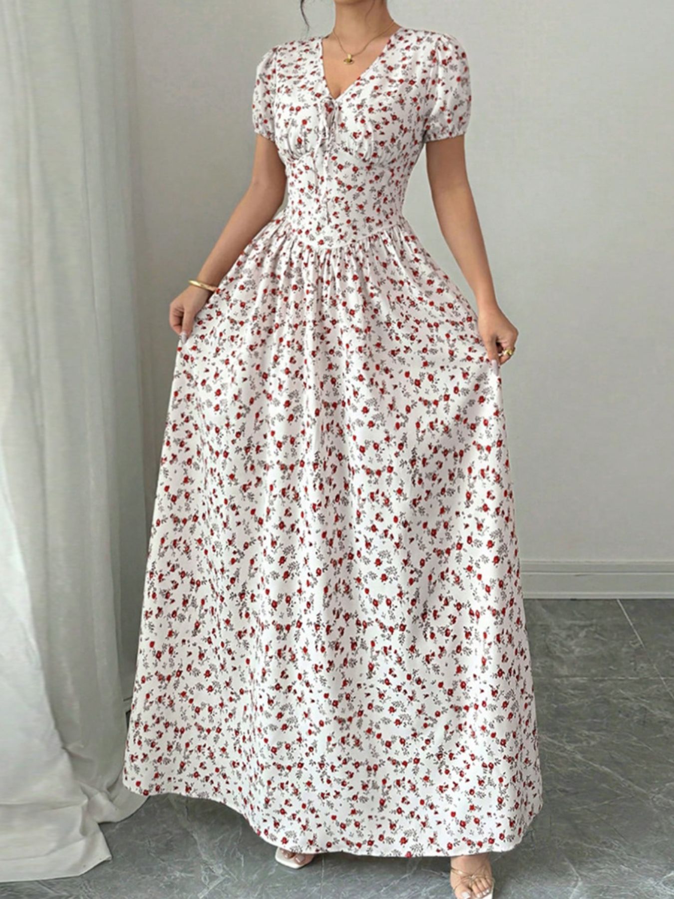Floral Print V-Neck Maxi Dress