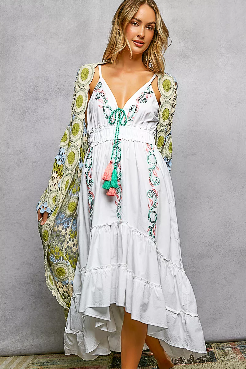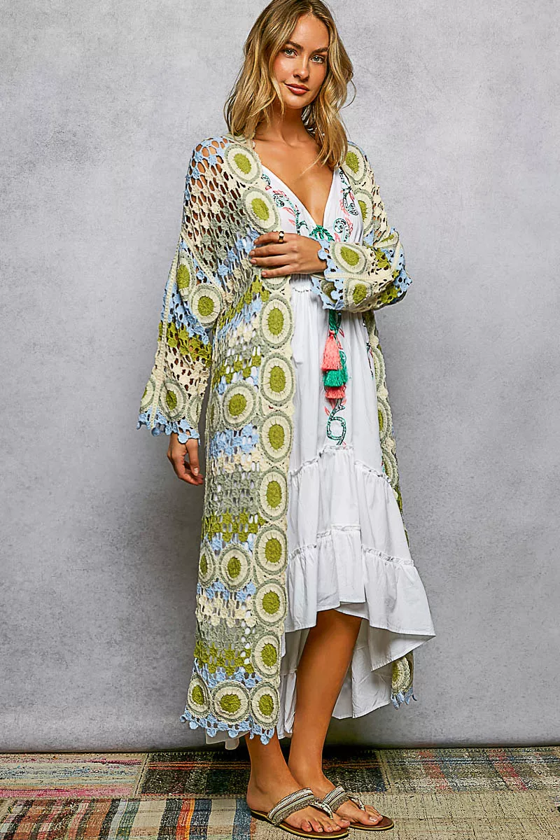 Pol Scalloped Edge Open Front Crochet Cardigan With Colorful Stripe Pattern